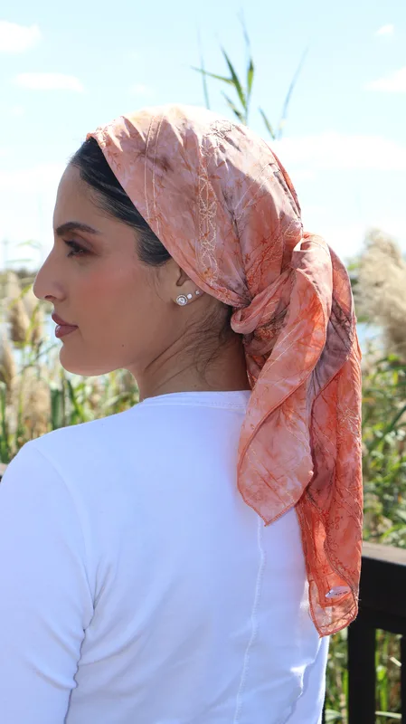 מטפחת מרובעת אפרסק שיפון רקמה עדינה
